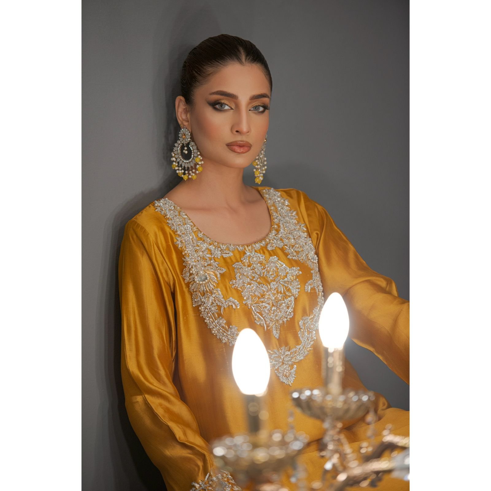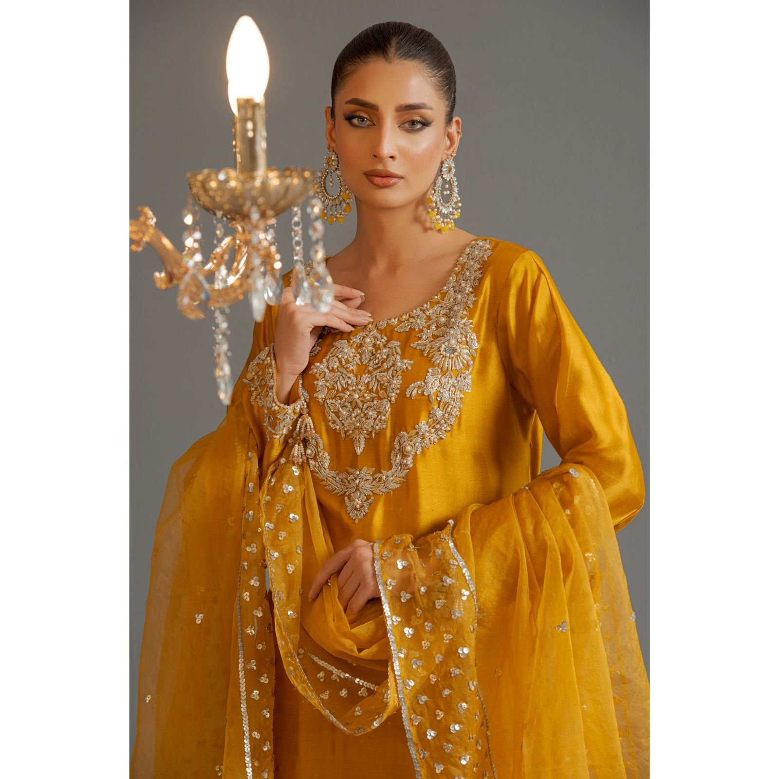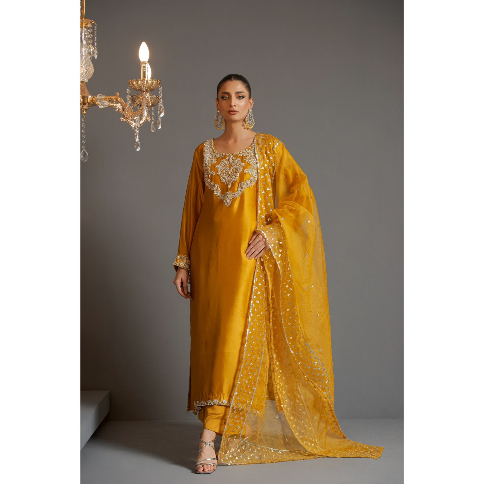 Yellow pure silk 3 pcs stitch dress- shirt pure sheesha silk- pant rawsilk PK fine- duppatta soft organza——AYESHA! ⭐️ ‘24 Embrace elegance with Ayesha🕊️ Romanticism’s defined on the palette of glow,harmony and elegance- Beautiful hues of gold,maroon,burgundy,lime,teal and black Radiating elegance with old school techniques of Kora,dapka,cutdana,sitara,pita and different hand work techniques.🌟 Elevate your style with Sehrish Nadeem-🌟 Affordable luxury formal wear