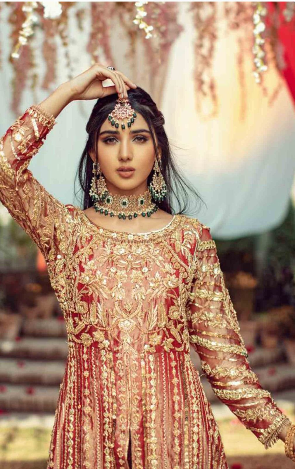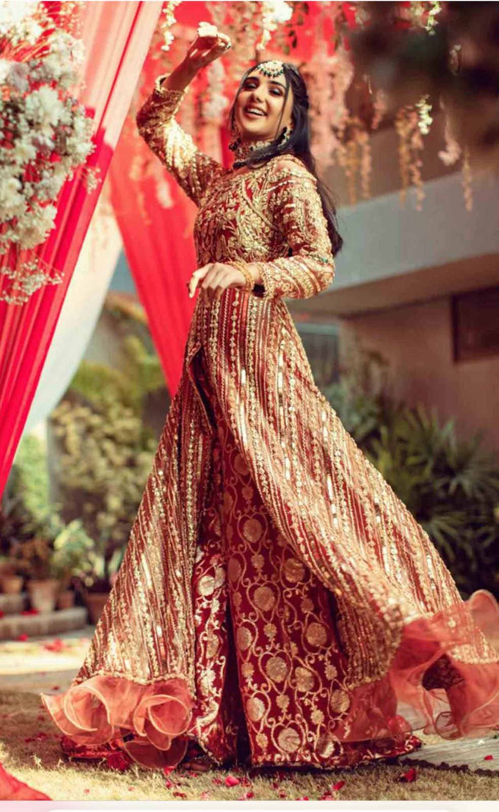 Work Technique: Richly Embellished With Golden Red Zardozi