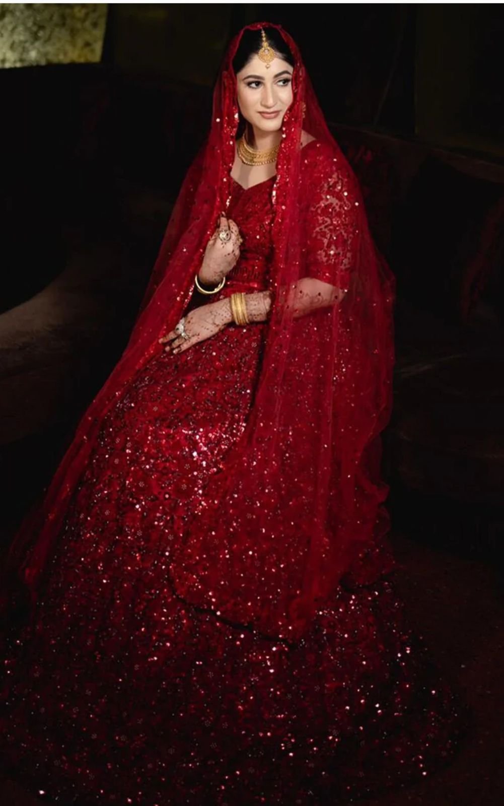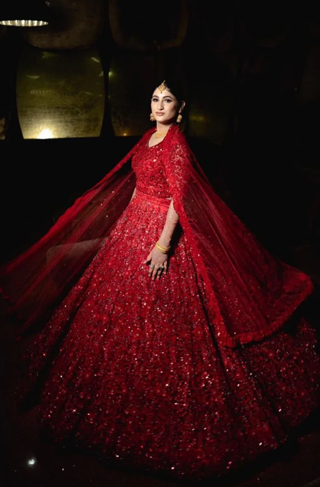 Red bridal lehenga will never go out of style fully embellish with Red Dapka/Dabka/French Wire/Sequins. Here’s a shoutout to all the brides-to-be who still think that red colour is ethereal and if you too are planning to wear a red lehenga at your wedding.